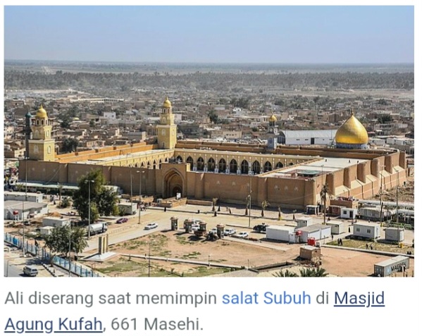 Khalifah ke empat Syaidina Ali Bin Abi Thalib RA ,dibunuh oleh Abdurrahman bin ‘Amr bin Muljam al-Muradi, seorang Khawarij dari Mesir. Ibnu Muljam berasal dari suku Himyar dari pihak ayah tetapi termasuk di antara Muradi karena kekerabatan keibuannya. Yang terakhir bersekutu dengan suku Kindah. Dia telah memasuki Kufah dengan niat membunuh Ali untuk membalaskan dendap rekan-rekannya yang tewas pada Pertempuran Nahrawan.