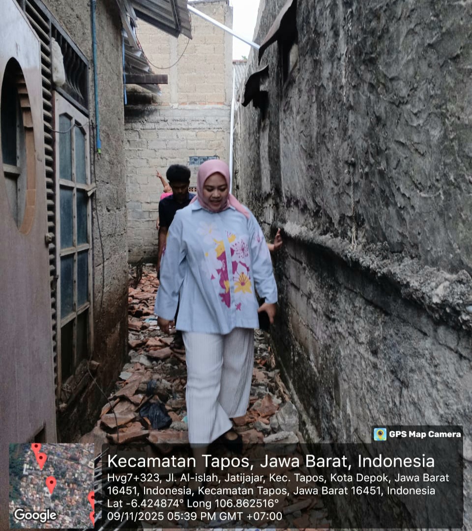 Anggota Komisi D DPRD Kota Depok, Fraksi Partai Golkar FANNY FATWATI PUTRI, S.H., M.Ikom meninjau pelaksanaan program renovasi BSPS Bantuan Stimulan Perumahan Swadaya milik Pemerintah diKelurahan Jatijajar Kota Depok, Sabtu (9/11/2025).