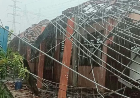 Kondisi SMKN 1 Gunungputri yang ambruk.